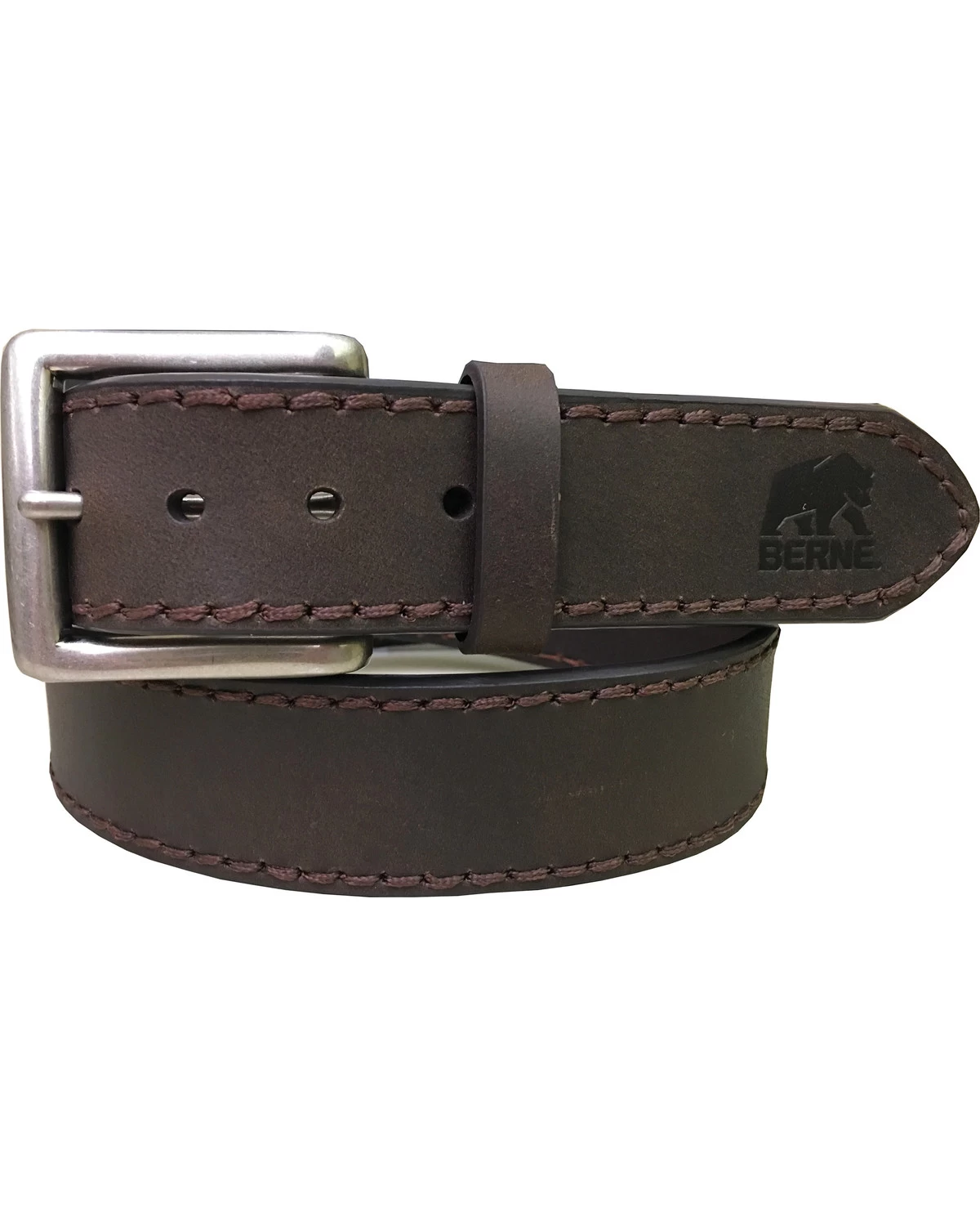 Dress up any outfit on and off the work site when you wear this belt from Berne. This belt has leather construction with heavy stitching along the sides. The Berne logo is embossed on the end and will let everyone know your favorite brand. Look and feel great all day when you wear this belt from Berne.