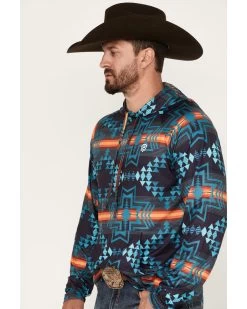 - Solid black with rust and teal serape striped sleeves
