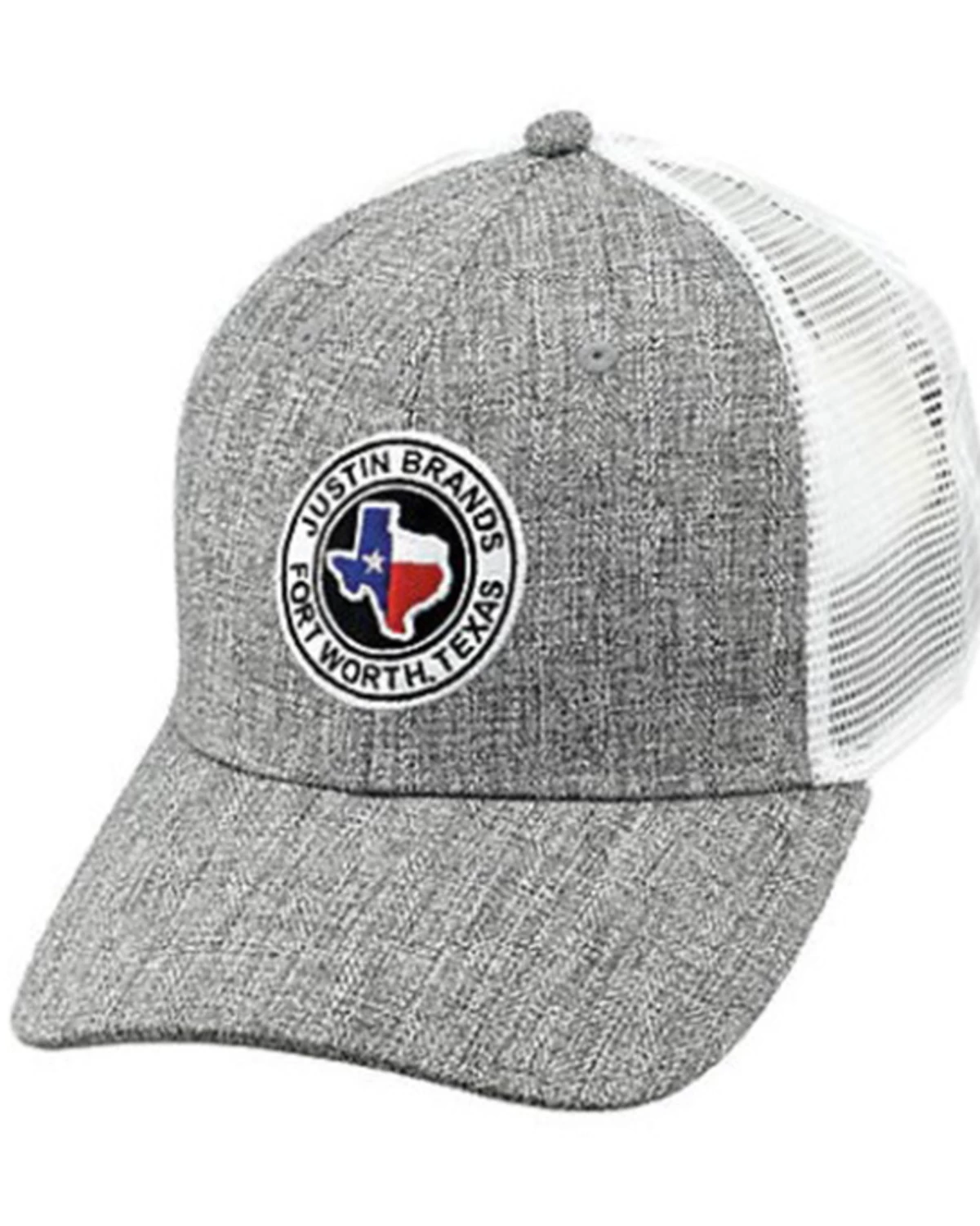 Justin Men’s Heather Gray Fort Worth Texas Logo Patch Mesh-Back Ball Cap