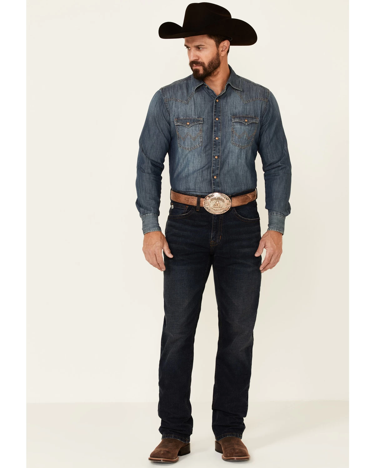 Rock & Roll Denim Men’s Hooey Double Barrel Dark Vintage Stretch Relaxed Stackable Bootcut Jeans