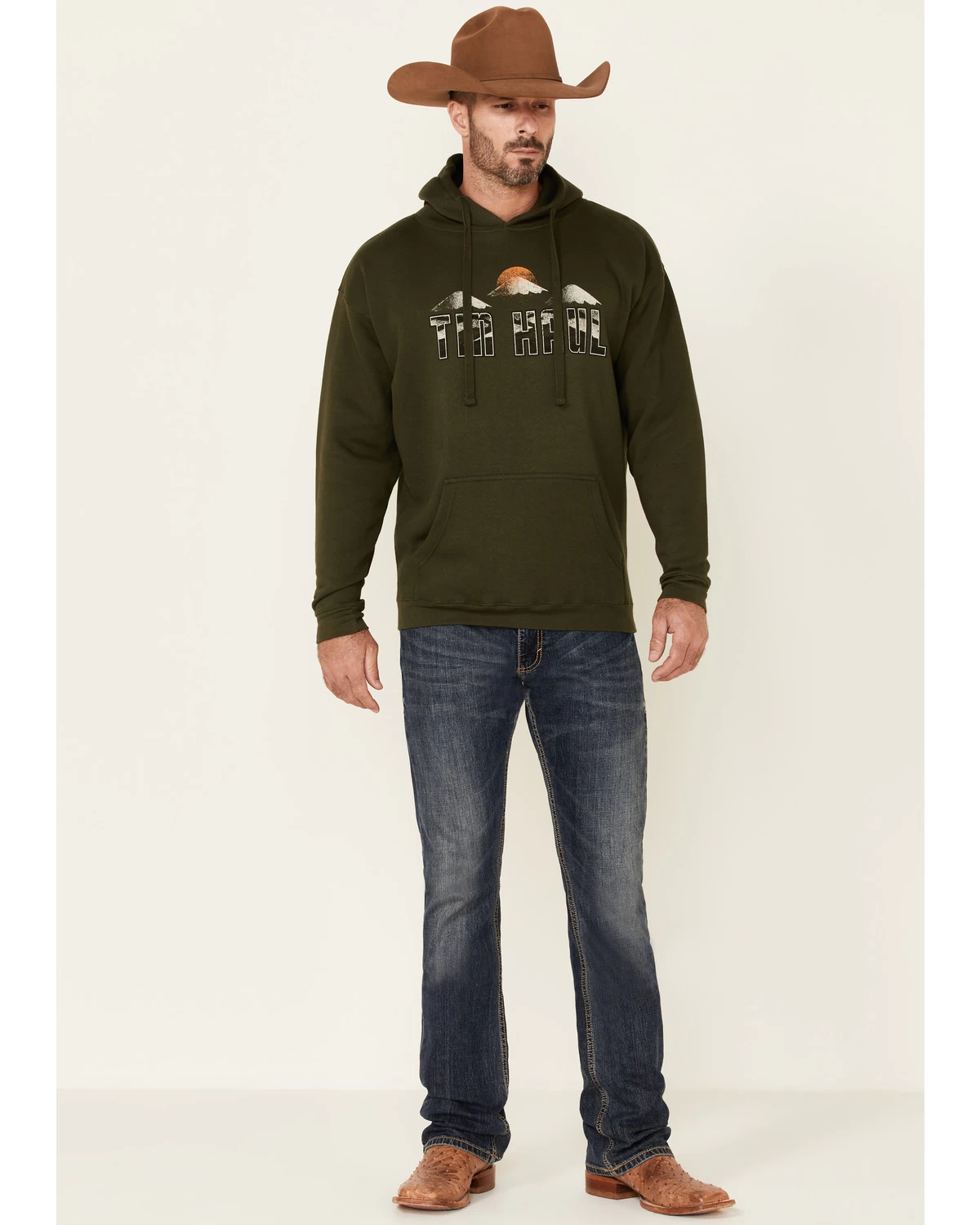 - “Tin Haul” with mountain caps & sunset graphic on front